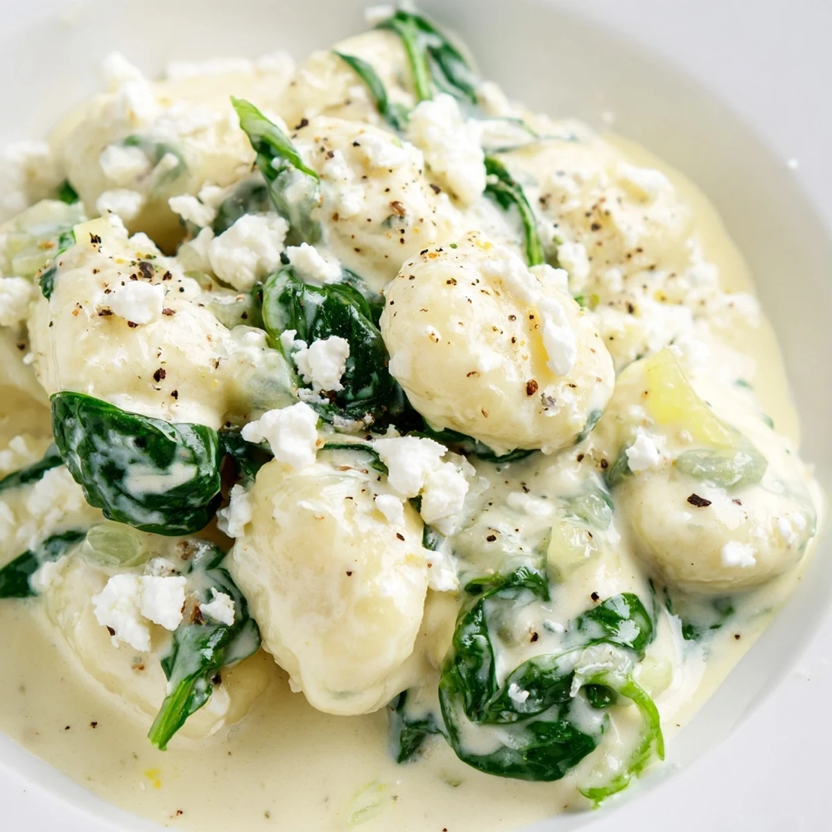 Indulge in pillowy soft potato gnocchi swimming in a luxurious cream-based sauce, perfectly complemented by the earthy notes of fresh spinach and the tangy bite of crumbled feta cheese. This effortless vegetarian main comes together in just 25 minutes, making it ideal for quick yet satisfying weeknight dinners. The sauce, enriched with vegetable broth and a hint of optional nutmeg, creates a velvety coating that clings beautifully to each dumpling.