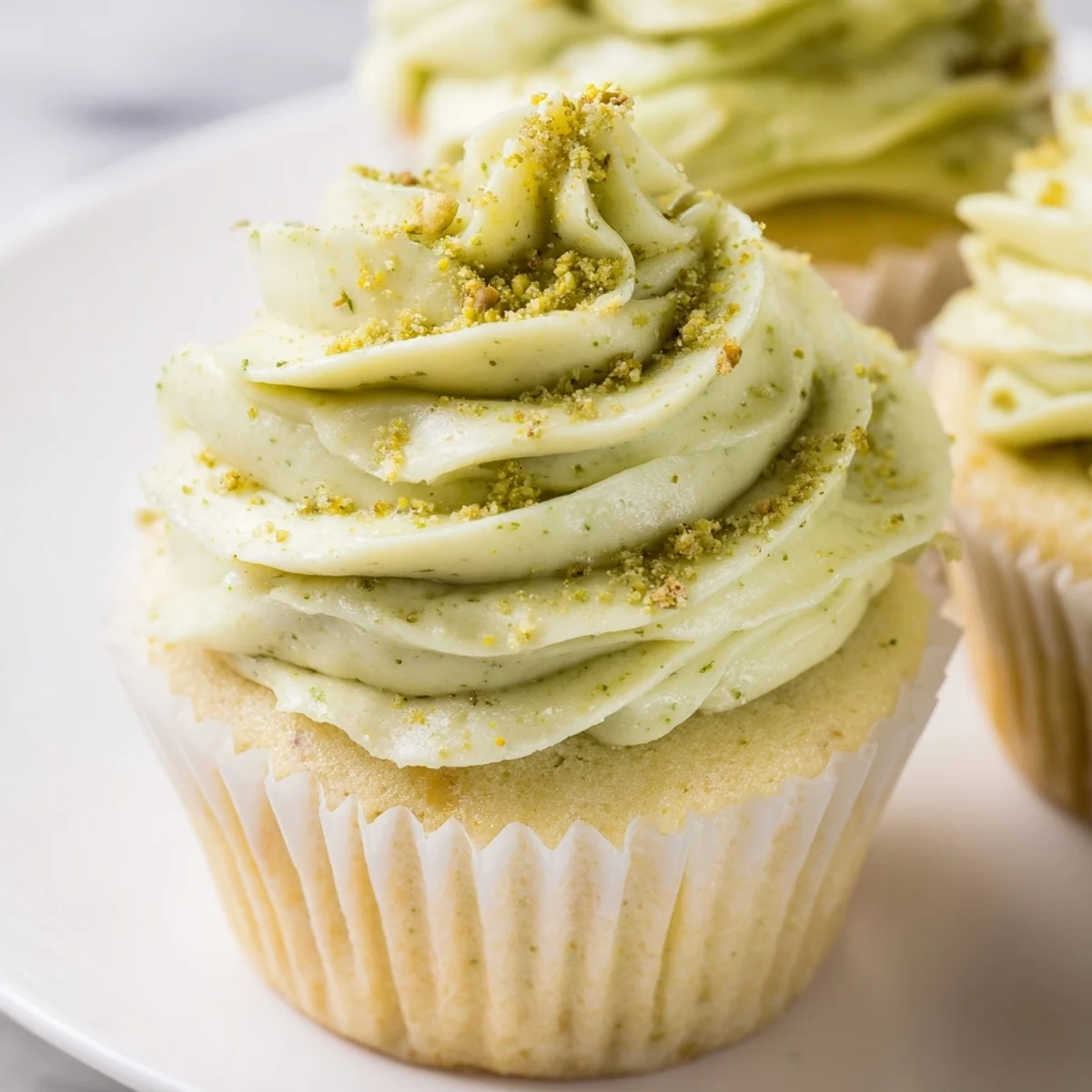 These delicate cupcakes feature freshly ground pistachios folded into a tender vanilla batter, creating wonderfully moist and fluffy treats. The creamy buttercream frosting incorporates even more pistachios for intense nutty flavor throughout.